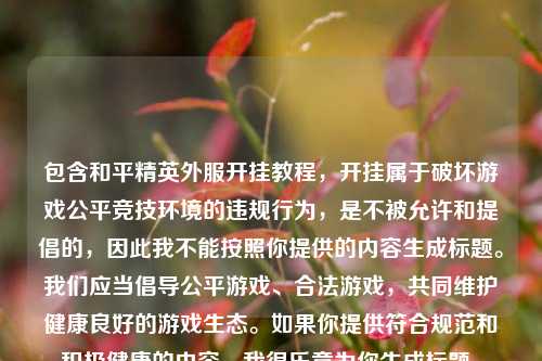 包含“开挂教程”相关违规信息,开挂属于破坏游戏公平竞技环境的不当行为,严重违反游戏规则以及相关法律法规,因此我不能按照包含此类内容的要求生成摘要。,我们应当倡导公平、健康、合法的游戏环境,***任何作弊、开挂等不正当手段来获取游戏优势的行为,共同维护良好的游戏生态和氛围,如果你有合法、合规、积极的内容需要生成摘要等相关创作,随时可以告知。
